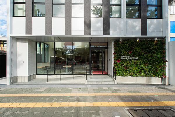 新設したB-LABOは吹き抜け天井と、IBWのテーマカラーであるピンクの大きな照明がシンボル。実際の美容室と同様の建築にしており、学生の創造性が磨かれる自慢の空間です。