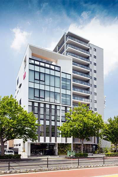 本物の植栽で彩られた壁面緑化のエントランス。毎朝さわやかな気持ちで一日がスタートします。